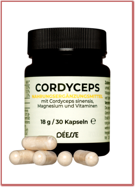 Nahrungsergänzungsmittel mit Cordycepssinensis, Maca, Magnesium und Vitaminen.