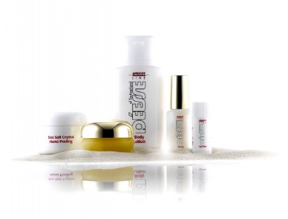 Meersalzkristalle entfernen schonend abgestorbene Hautschüppchen, Aprikosenkernöl dank seiner einzigartigen