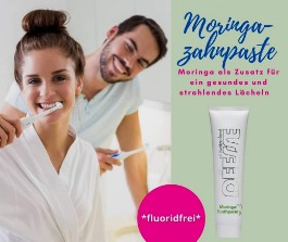 Nach dem großen Erfolg unserer Moringa-Kapseln gibt es jetzt auch eine Zahnpasta mit Auszügen aus dem "Wunderbaum" . In unserer neuen fluoridfreien Zahnpasta kommt Moringa in fermentierter Form zum Einsatz. Dadurch hat dieser wertvolle Inhaltsstoff zusätzlich einen probiotischen Effekt auf die Mundschleimhaut. Daneben enthält die Zahnpasta Xylitol, welches nicht nur kariesauslösende Bakterien bekämpft, sondern auch die Plaquebildung vorbeugt.
