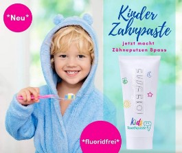 Das dies kein Wuschtraum bleibt, haben wir die neue fluoridfreie Kinder-Zahnpasta entwickelt. Damit wird Zähneputzen zum Vergnügen, denn die fröhliche Tube enthält eine leuchtend pinke Zahnpasta mit leckerem Canberrygeschmack, und das zuckerfrei. Um die Kariesprophylaxe kümmert sich Xyliton, weshalb auf Fluorid verzichtet werden konnte. Xyliton, auch Birkenzucker genannt, bekämpft nicht nur kariesauslösende Bakterien, sondern beugt Plaquebildung vor.